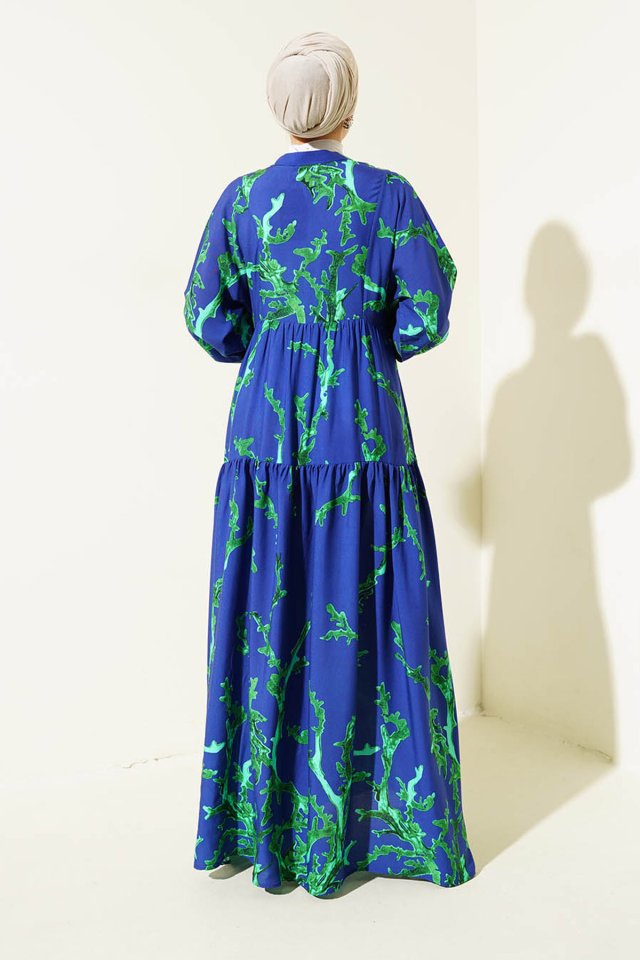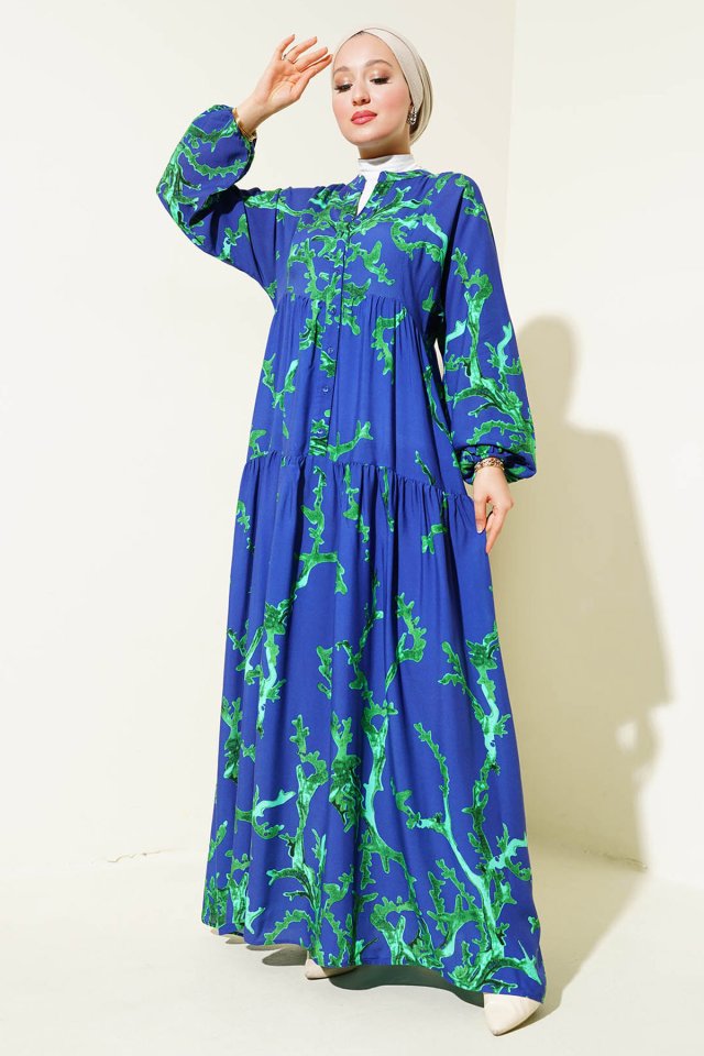 2423 Otantik Desenli Tesettür Elbise - T. Lacivert
