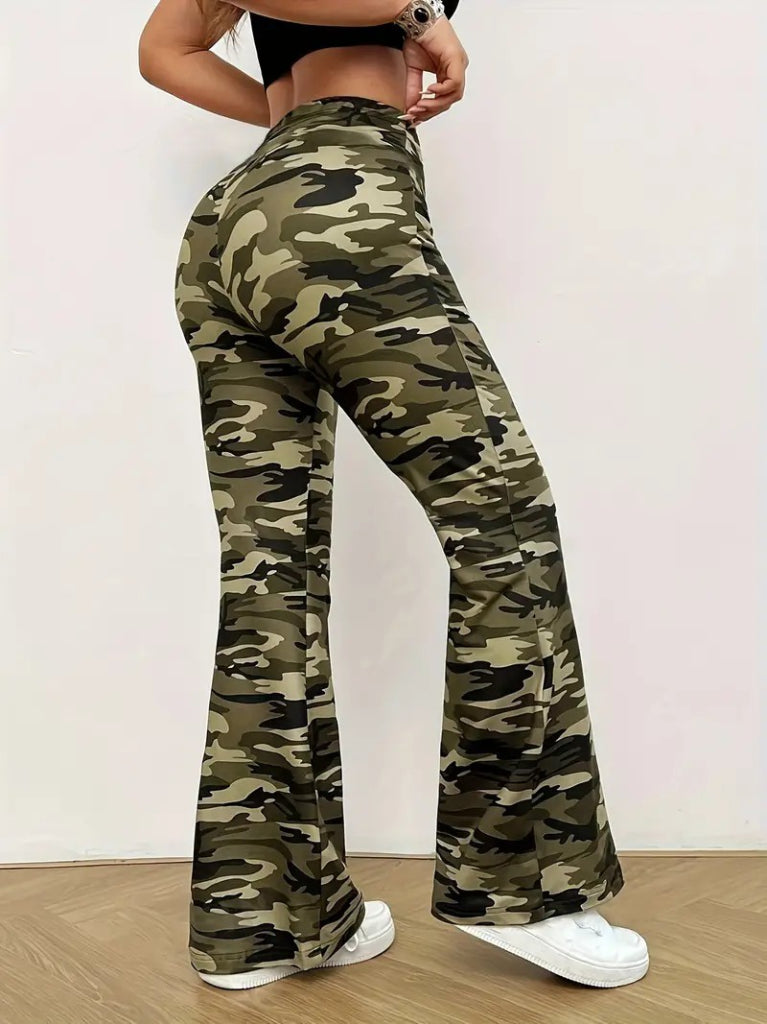 Kadın Yüksek Bel Kamuflaj Desenli Dalgıç Tayt