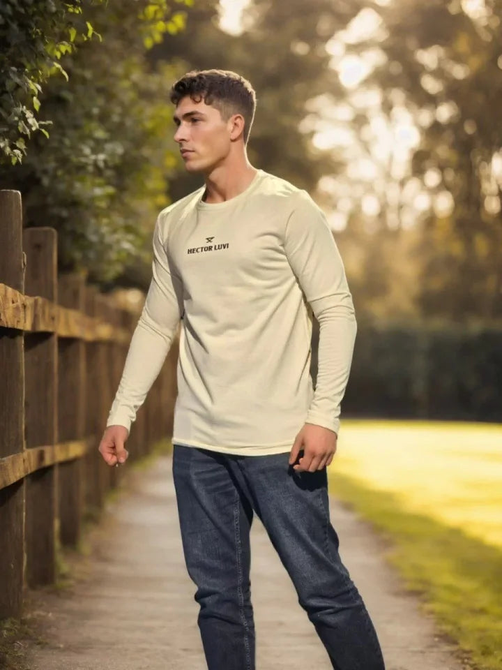 Unisex Bisiklet Yaka Uzun Kollu T-Shirt - Beyaz